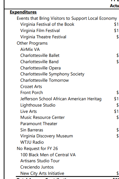 So, when we're funding "Parks and Rec," we're funding the actual Parks department, plus the library, the tourism board, and things like Live Arts, MRC, and the opera.